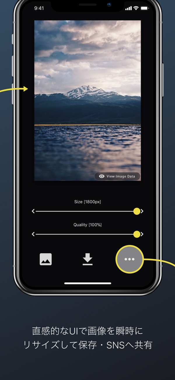 高画質な写真の品質を変えることなくリサイズできます。
