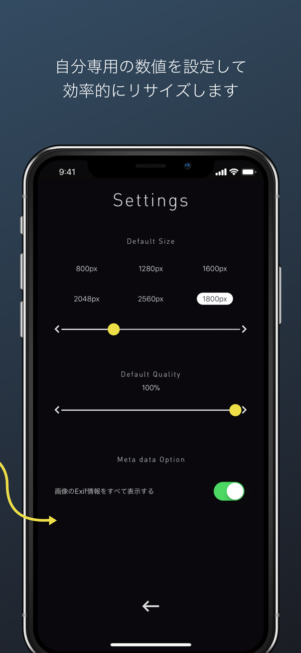 - いつも使う縮小サイズや保存画質をデフォルトで設定可能