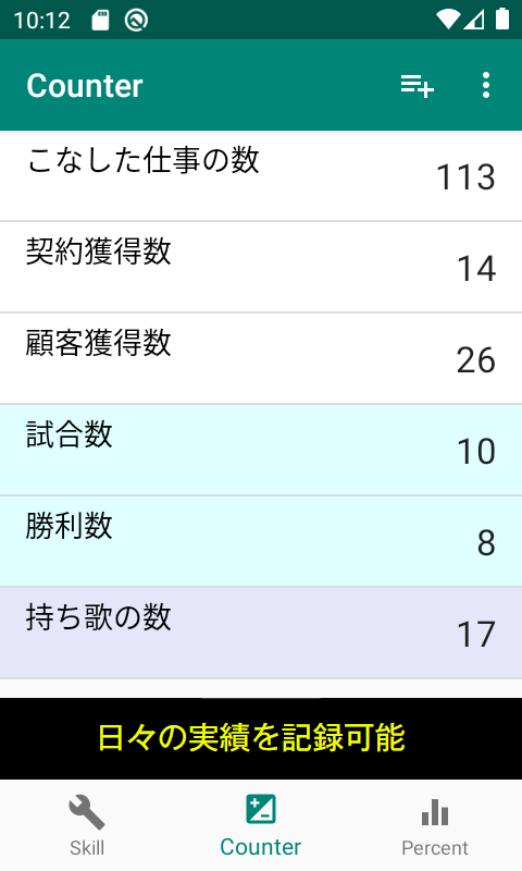 カウンターで集めたデータを元に、成功率や勝率などを計算できます。