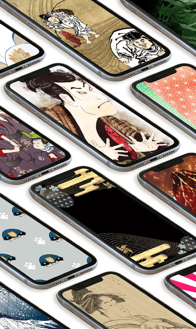 葛飾北斎、喜多川歌麿、東洲斎写楽、歌川国芳などの人気浮世絵をデジタル技術で鮮やかに仕上げ直した壁紙も多数。