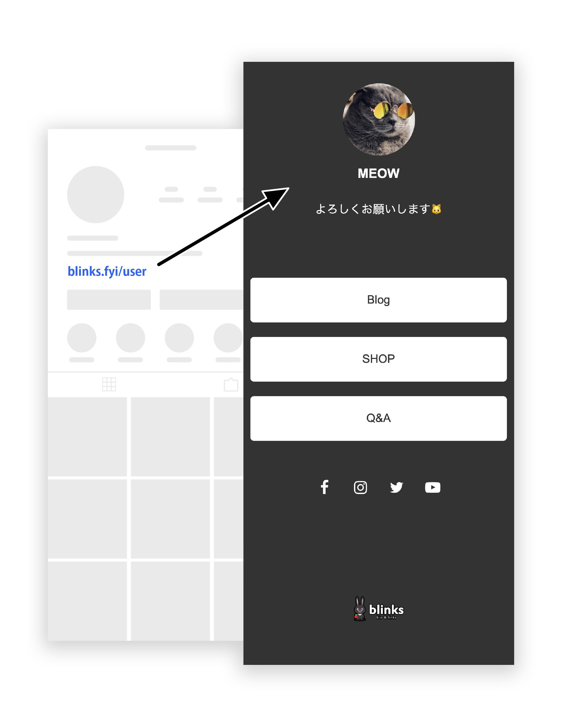 ひとつのURLにあなたのリンクやプロフィール情報を集約。SNSのプロフィール欄をすっきりさせ、更新の手間を減らすことができます。