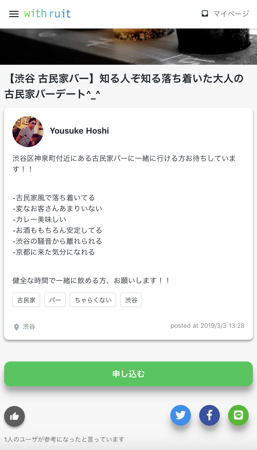 withruitとは、自分が行きたいと思ったデートを投稿することによって、デート相手を募集するサービスです。