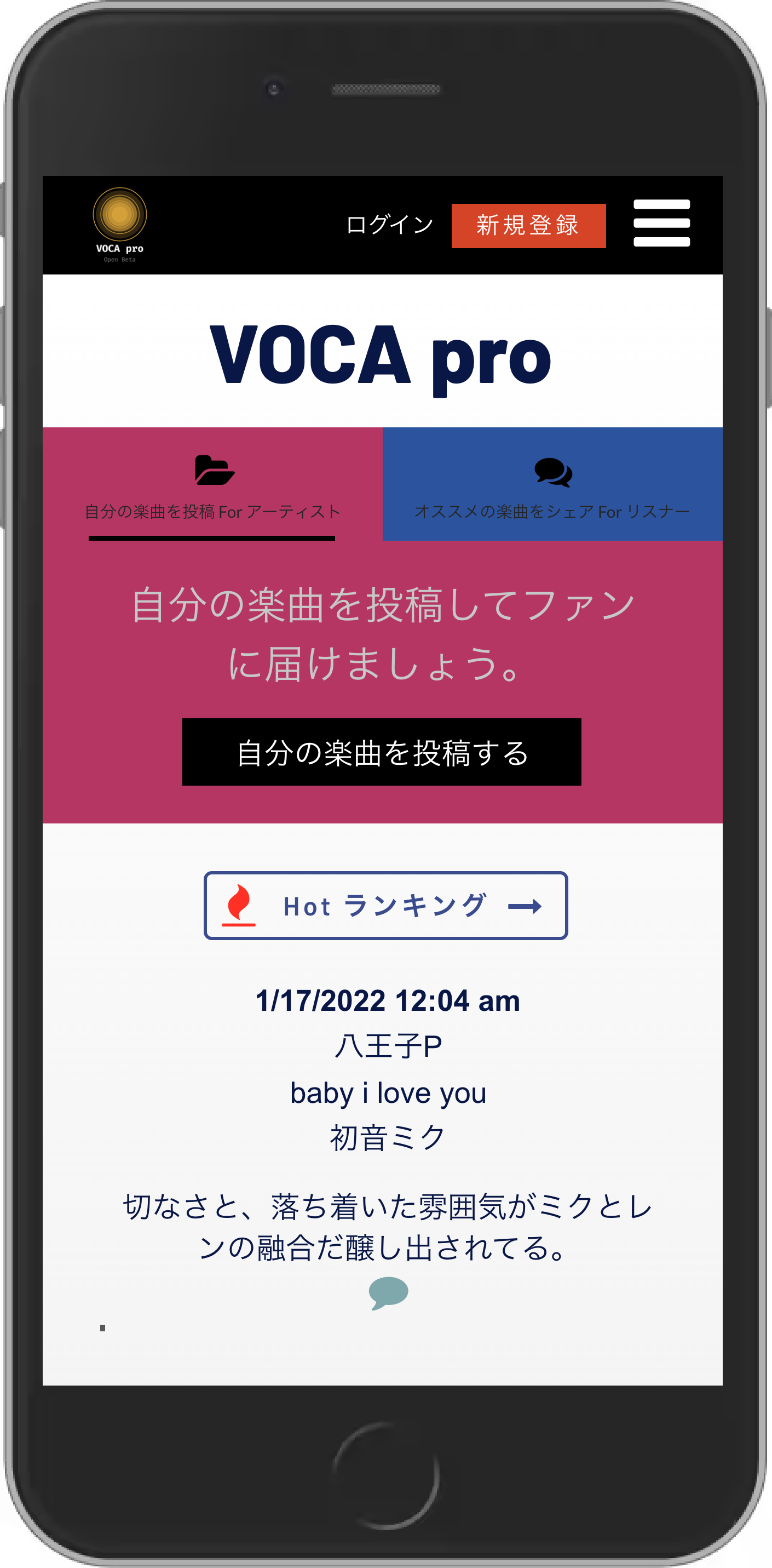 VOCA proは「VOCALOIDを愛する全ての人のためのSNS」を目指したサービスです。