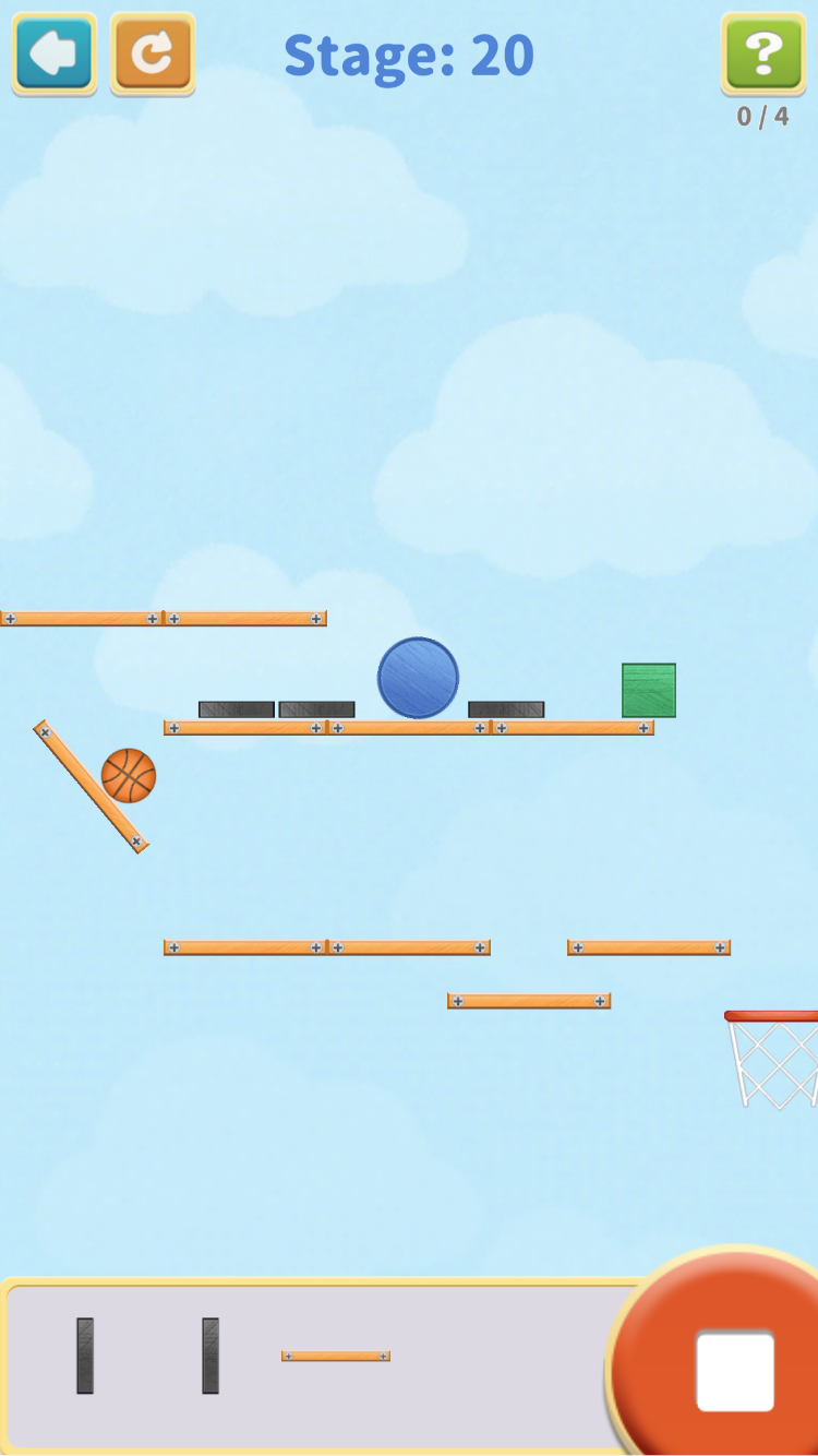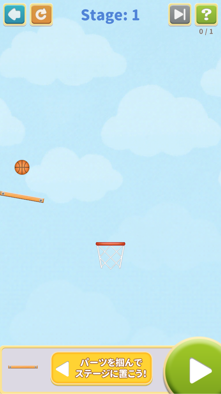 パーツを配置し、ボールをゴールに導いてシュートする、物理パズルゲームです。