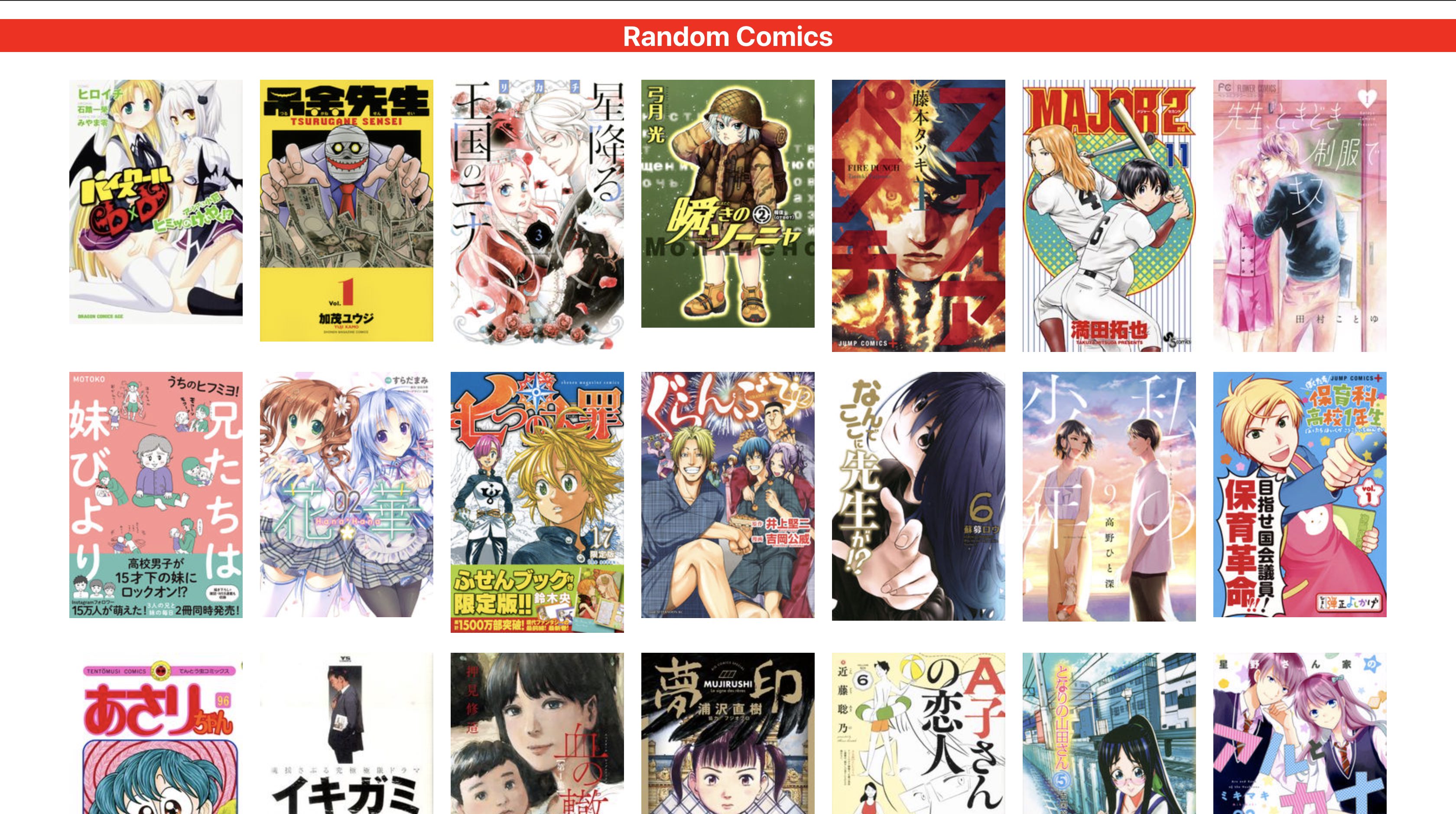 Random Comicは表紙しか表示されないので直感で漫画を探せます