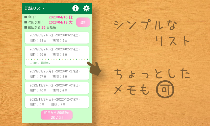 ただただ、生理の開始と終了を記録するだけです。