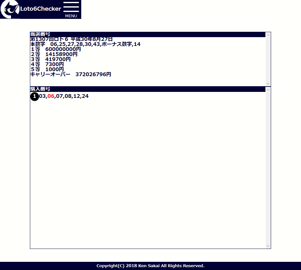 Loto6Checkerではロト6の当選確認が出来ます。