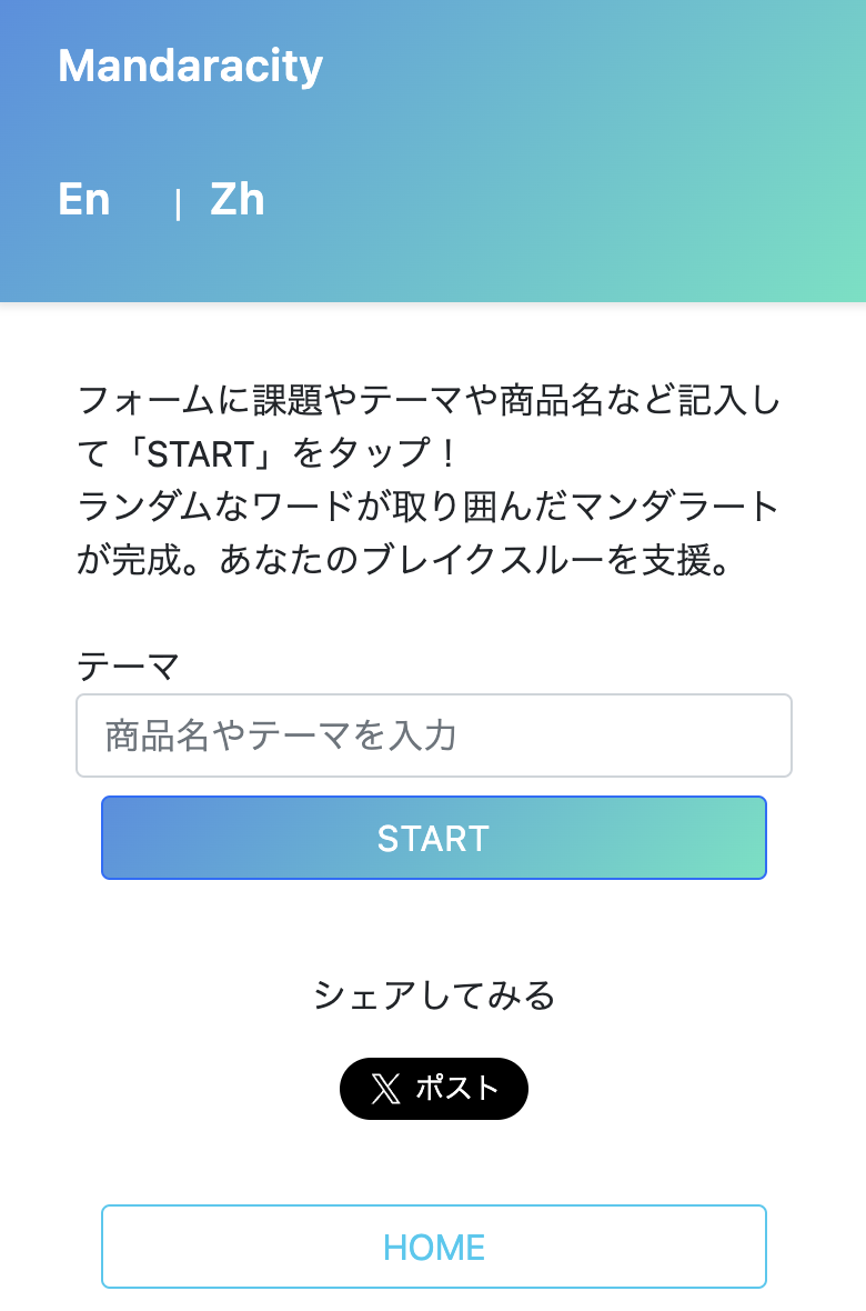 フォームに課題やテーマや商品名など記入して「START」をタップ!