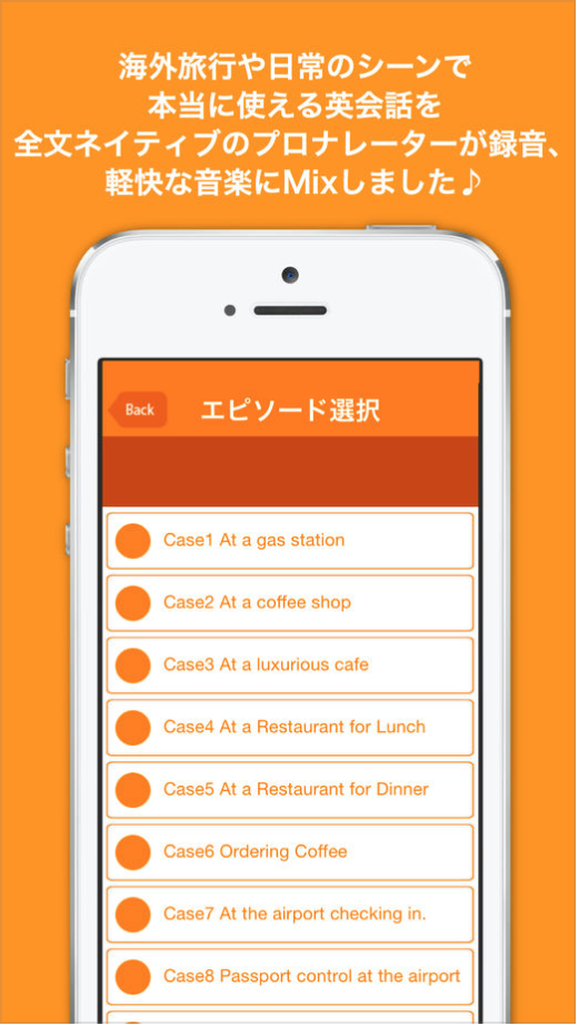 軽快なBGMにMIXされた活きた英会話をテンポ良く、繰り返して音楽を聴くようにリスニング&スピーキング。