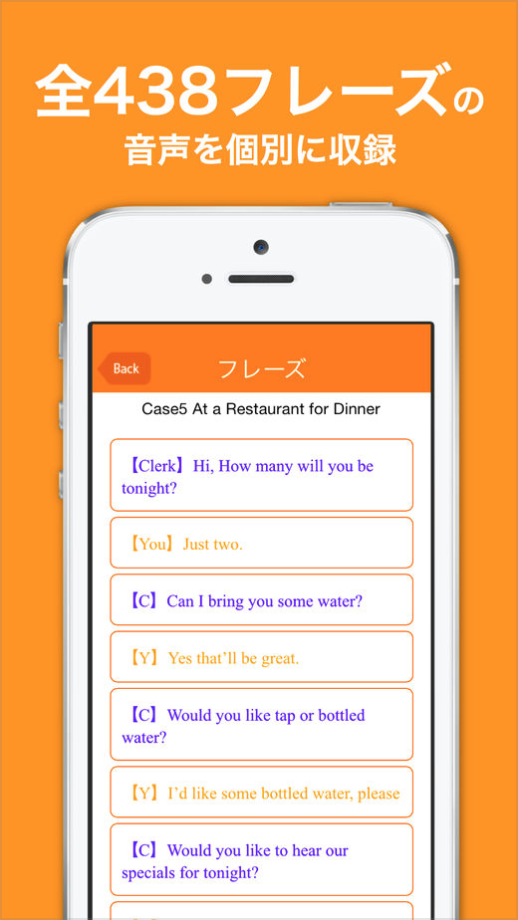 ただ聴くだけではなく、曲後半のRepeat modeで積極的にoutput(スピーキング)も!会話の後のbeep音に続いてリピートすれば、いつの間にか英語フレーズがあなたのものに。音声はプロナレーターのネイティブ男性+女性が担当しています。