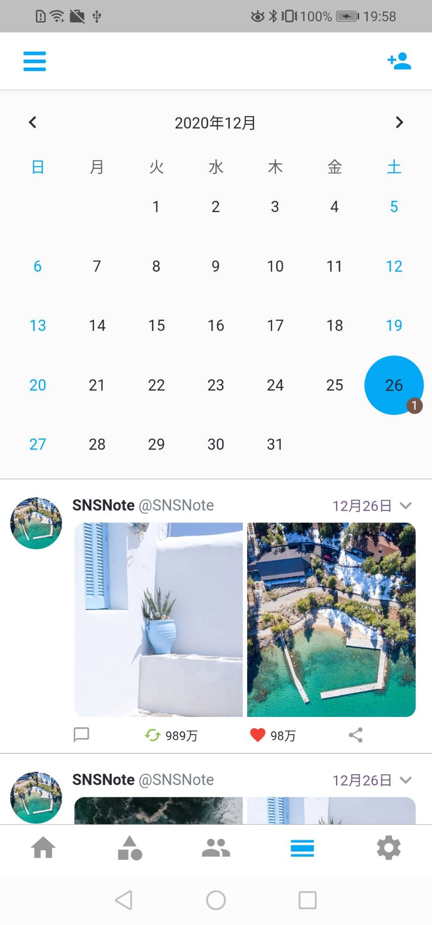 SNS風スタイルのメモ帳です。メモが端末内で保存されます。カレンダーを使用し、日付毎にメモを管理することや、画像の追加なども本家同様に行えます。