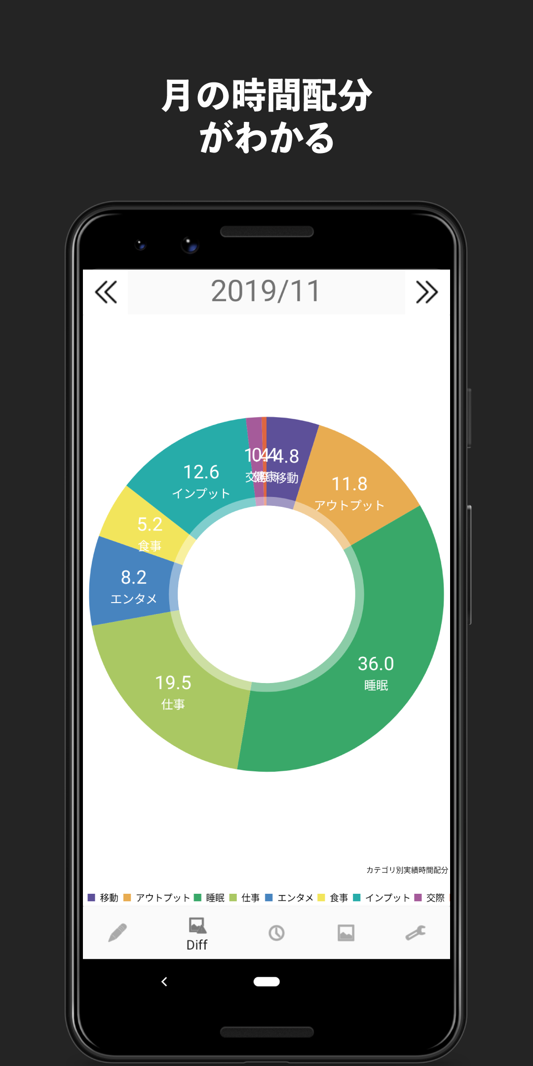 カテゴリごとの時間数、重要、緊急、自分の時間などを設定