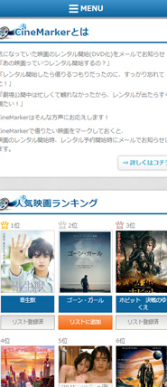 CineMarkerは映画のレンタル開始をメールで知らせてくれるWebサービスです。