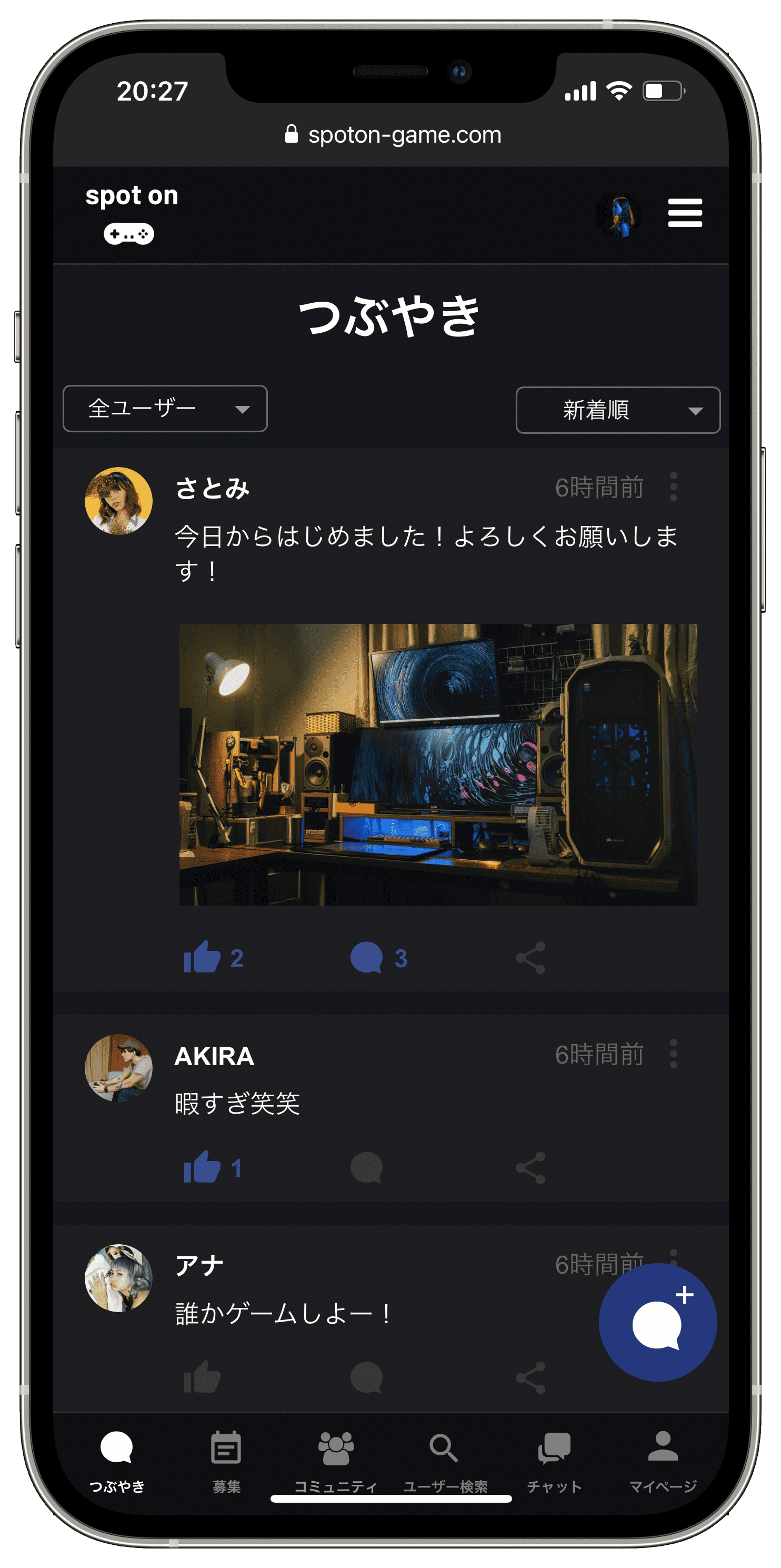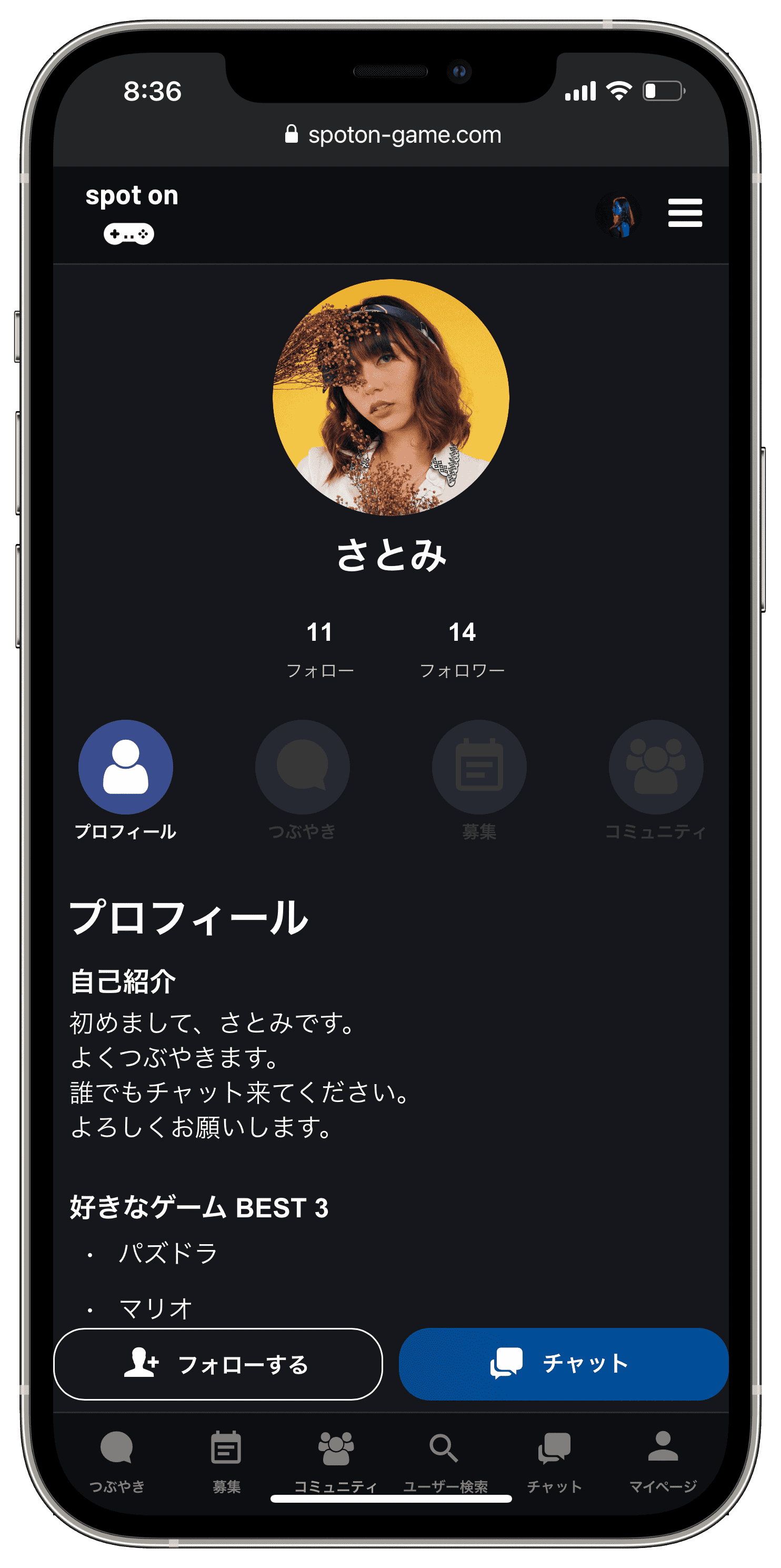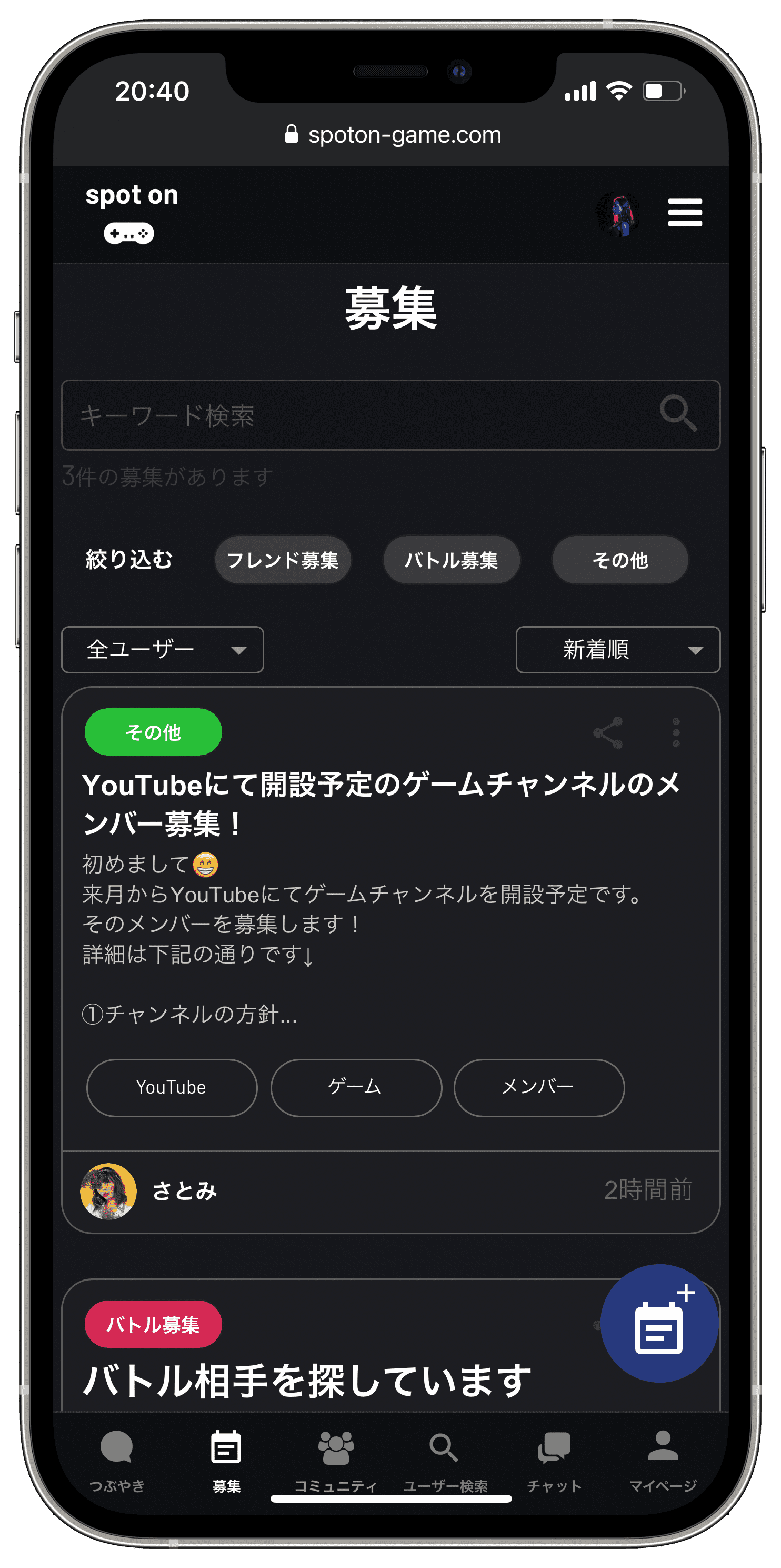 「spot on game」はゲーム特化のコミュニティサービスです。