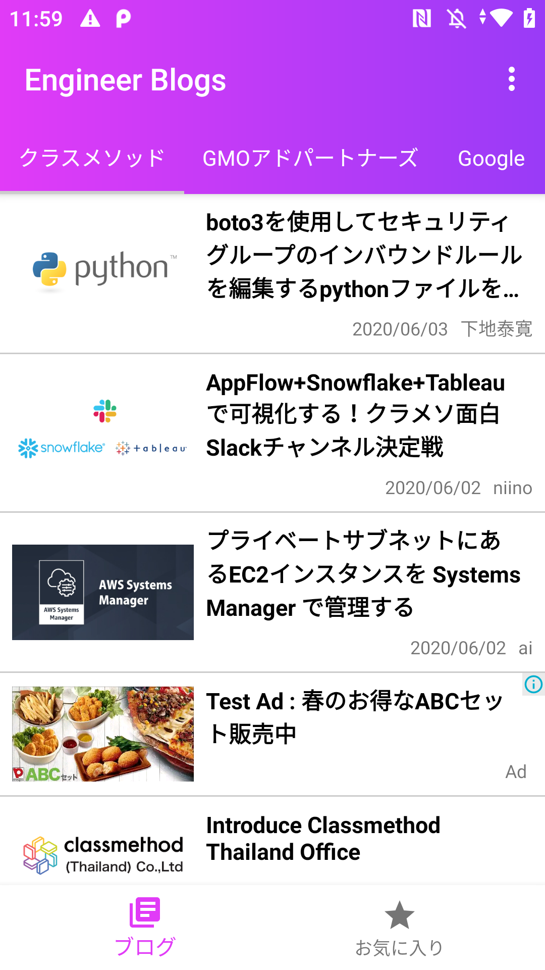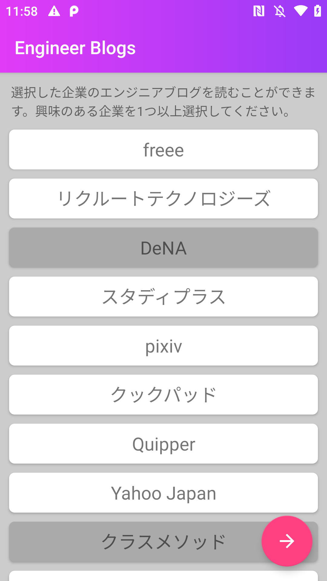 選択すると、その企業のエンジニアブログの記事が一覧で表示されます。