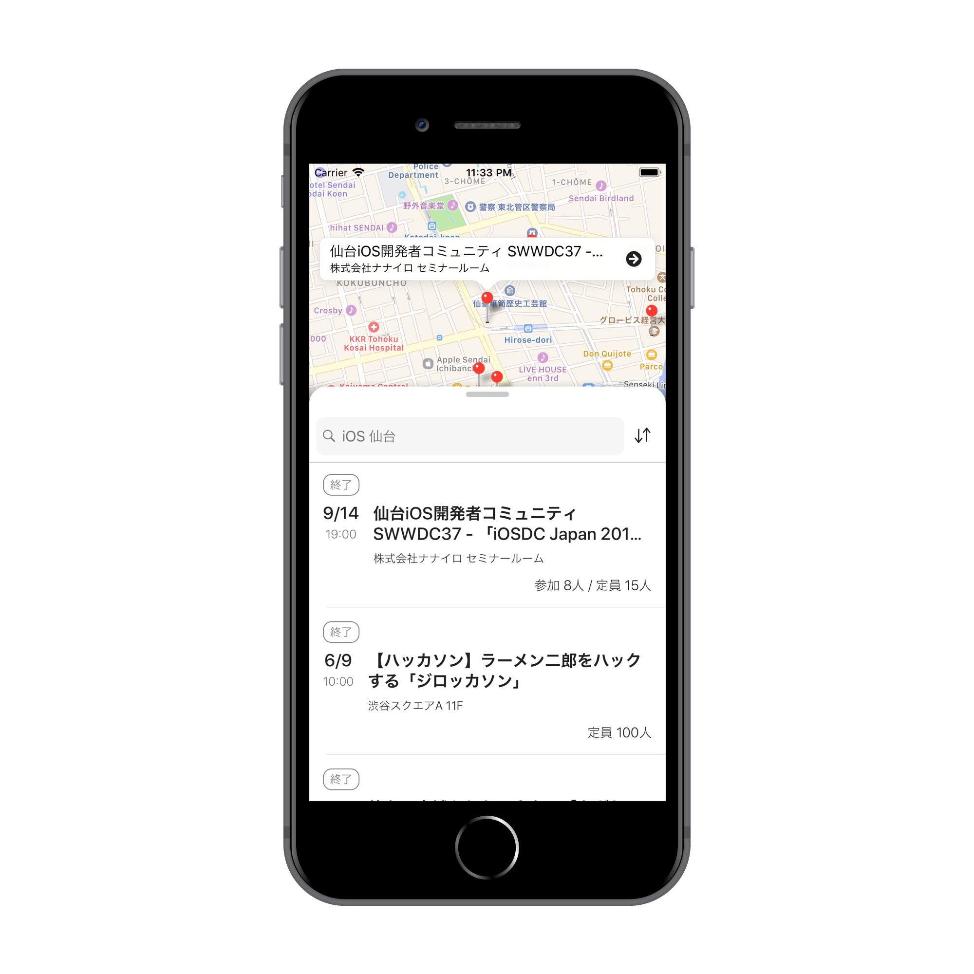 - 地図と連動したイベント検索(現在はiOS版のみ対応)