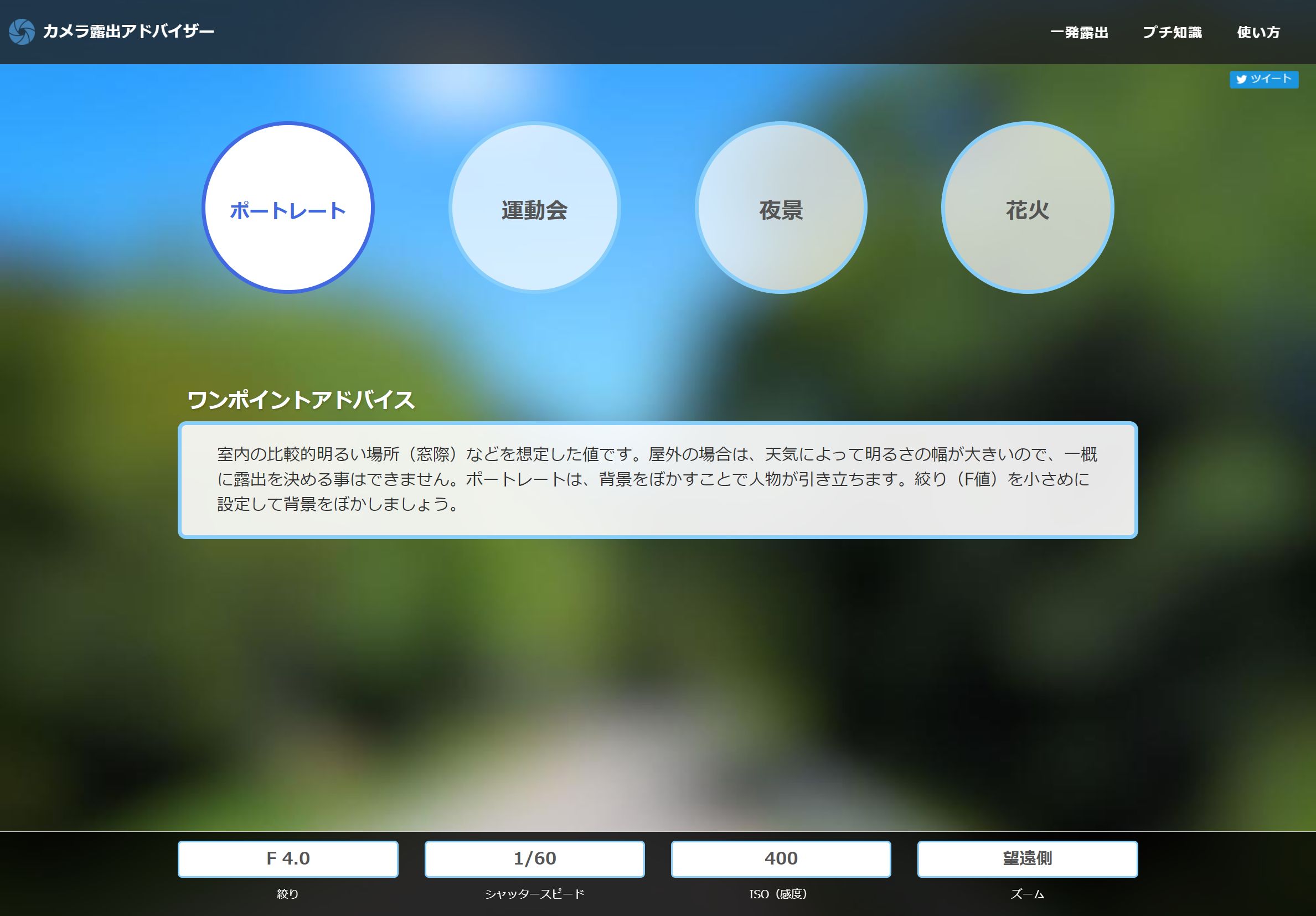 カメラ露出アドバイザー|カメラ初心者向けサポートツール